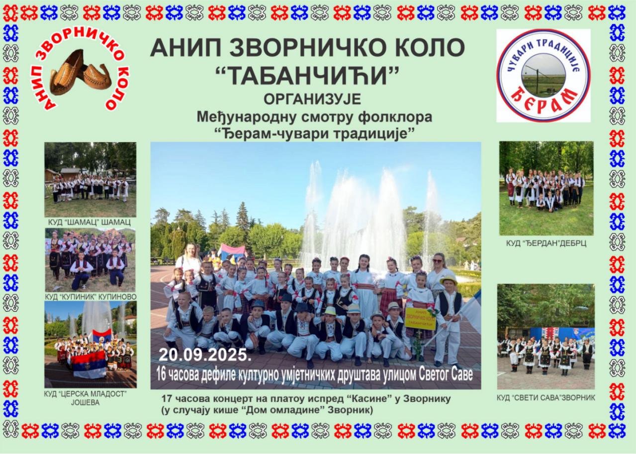 ANIP Zvorničko kolo”Tabančići” u subotu,20.septembra organizuje Međunarodnu smotru folklora”Đeram-čuvari tradicije”.