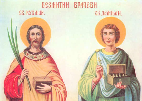 Srpska pravoslavna crkva molitveno se danas sjeća Svetih Vrača – Kozme i Damjana, ljekara koji su besplatno liječili ljude, pa su zbog toga i ostali upamćeni kao „besrebrenici“.Sveti Kozma i Damjan bili su ljekari i kako hrišćani čvrsto vjeruju, čudotvorci. Ova dvojica svetitelja bili su rođena braća, rodom iz Rima, a kao djeca su kršteni i u hrišćanskom duhu vaspitani.U hrišćanskoj tradiciji pominje se da su imali veliku blagodat od Boga, da liječe ljude i životinje od svake bolesti i muke, i to obično polaganjem ruku. Za svoj trud nisu tražili nikakvu nagradu, samo su od bolesnika zahtijevali da vjeruju u Isusa Hrista, jer se svako ozdravljenje dešava voljom Božijom.