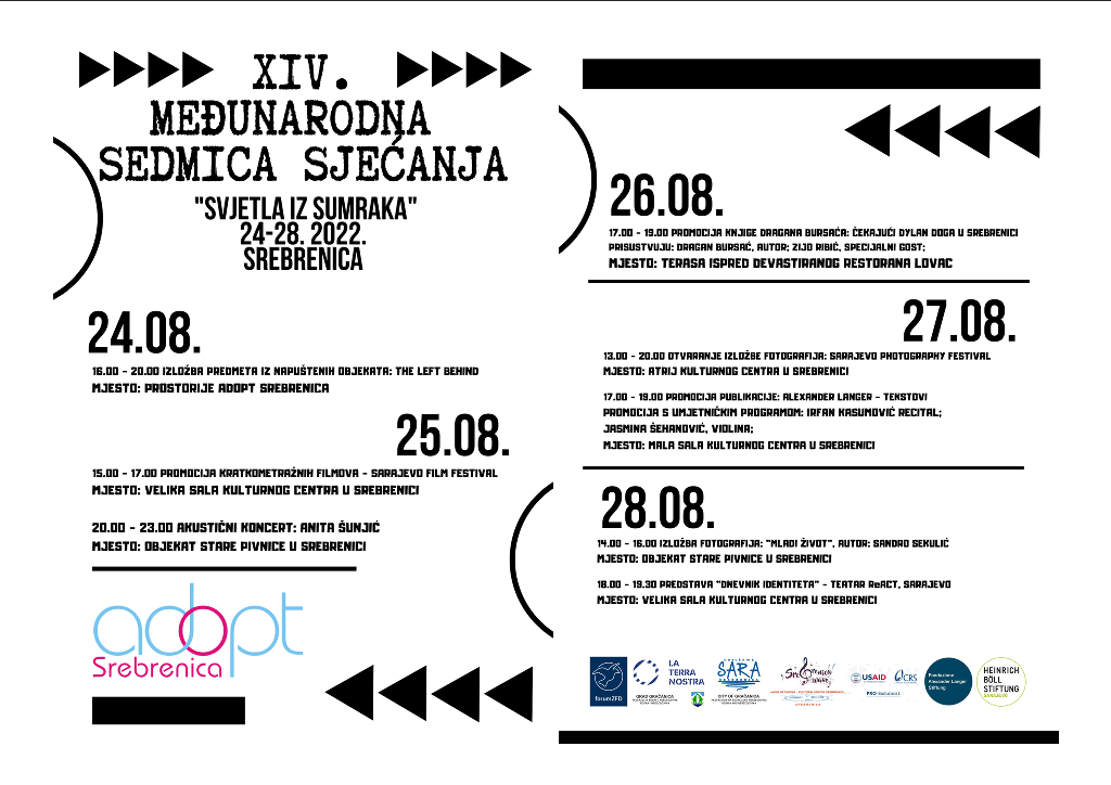 Od 24. do 28. avgusta u Srebrenici će biti održana 14. Međunarodna sedmica sjećanja, pod sloganom „Svjetla iz sumraka".