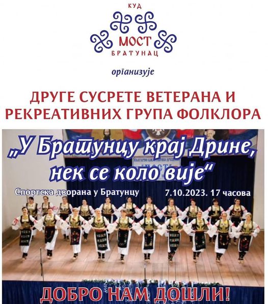 U organizaciji Kulturno-umjetničkog društva “Most” iz Bratunca danas se održavaju drugi susreti veterana i rekreativnih grupa folklora”U Bratuncu kraj Drine,nek se kolo vije”.