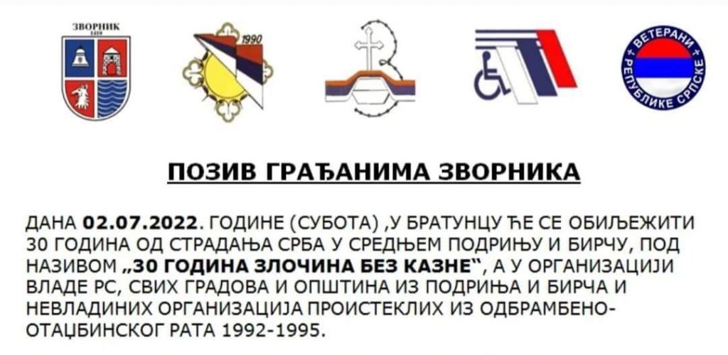 Zvorničke  organizacije proistekle iz Odbrambeno-otadžbinskog rata i Gradska uprava povodom  obilježavanja 30 godina od stradanja Srba u Srednjem Podrinju i Birču u Bratuncu organizovali su autobuski prevoz .