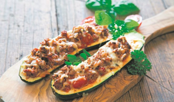Punjeni brodići od tikvica sa mlevenim mesom, sirom, paradajzom i mediteranskim začinima zadovoljiće svačiji ukus...