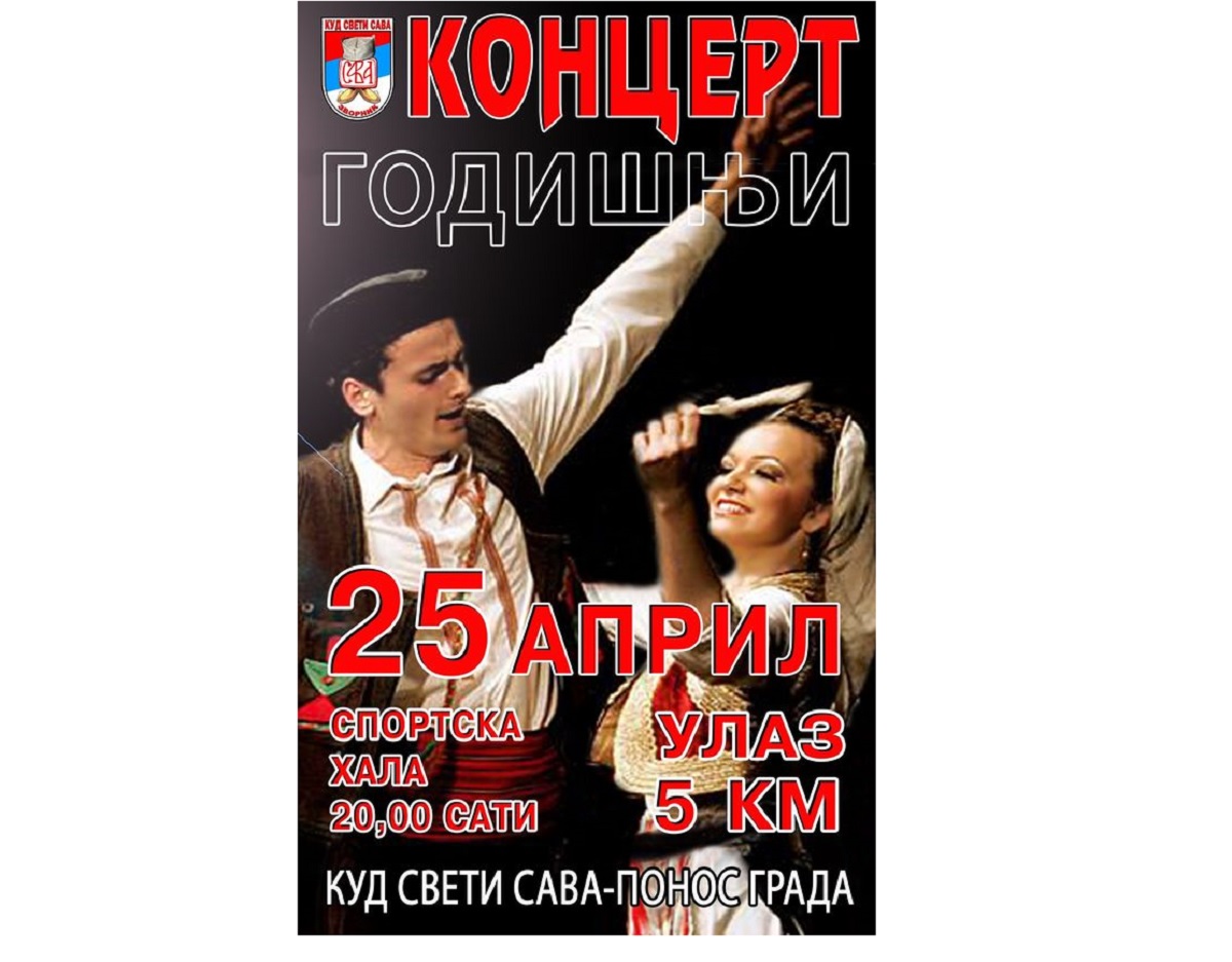 U zvorničkom Rekreativno sportskom centru u utorak, 25.aprila sa početkom u 20 časova biće održan godišnji koncert Kulturno-umjetničkog društva „Sveti Sava“ iz Zvornika.