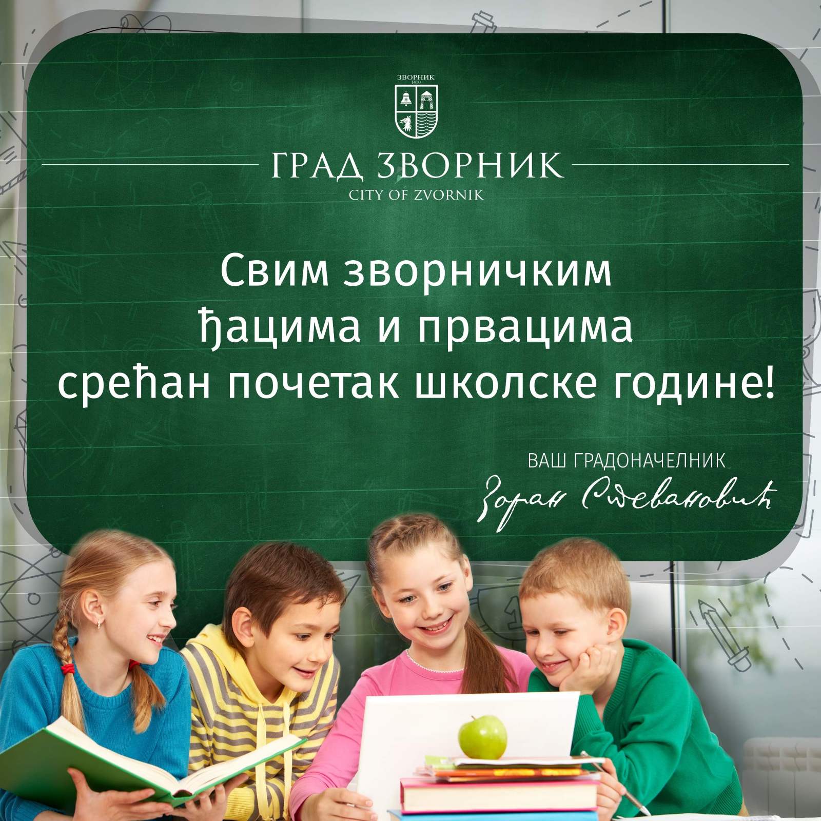 “Prvog septembra započinjete novu stranicu života, upoznajete nove drugare, učitelje, nastavnike, a to je samo jedan mali dio onoga što vam škola pruža. Škola je jedno od najvećih mjesta na koja će vas život odvesti. Zato nemojte biti previše zbunjeni jer vas čeka mnogo zabave. Škola vam daje novu porodicu i priliku da naučite nove stvari koje će zauvjek ostati u vašim životima. Želim vam srećan prvi dan škole”, poručio je gradonačelnik prvačićima.