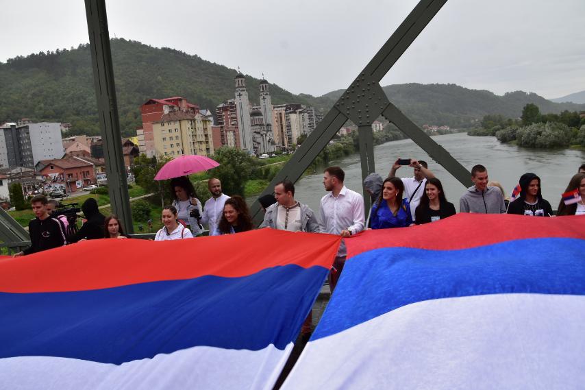 Na mostu kralja Aleksandra Prvog Karađorđevića vijorile su se zastave Republike Srpske i Republike Srbije koje su mladi nosili sa lijeve i desne obale rijeke Drine da bi se spojile i sastavile na sredini starog pješačkog mosta.