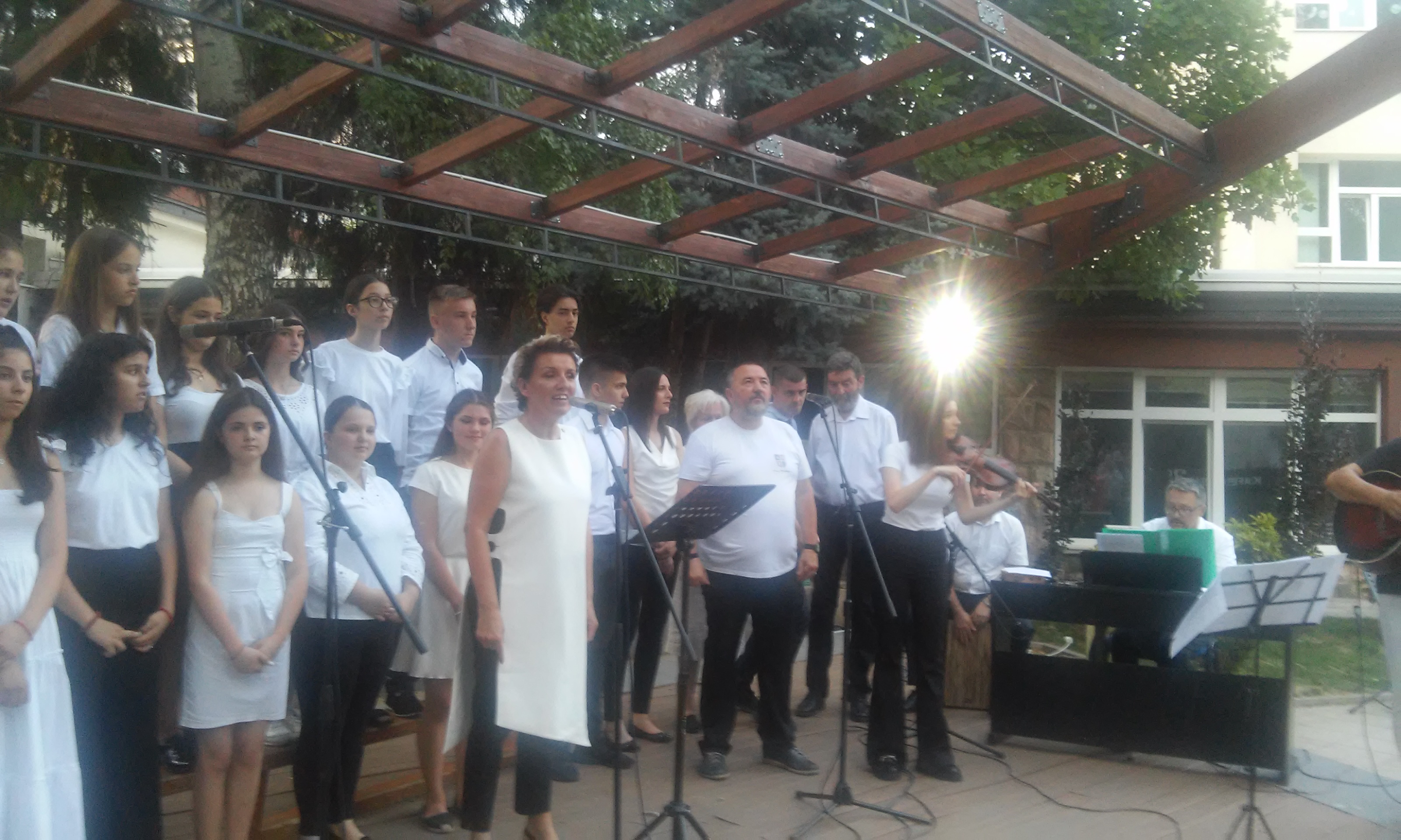 Članovi pevačkog društva “Izvornik” na platou ispred Muzičke škole, sinoć su održali koncert povodom Svetskog dana muzike .