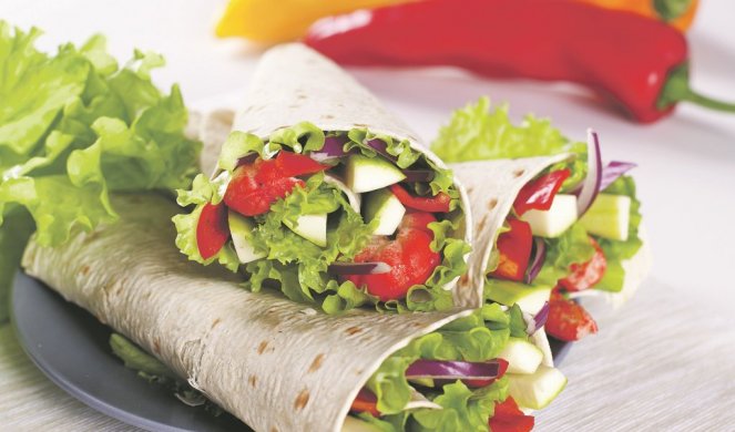 Sastojci: četiri tortilje, 500 g pilećeg belog mesa,200 g kačkavalja,dva jajeta,prezle,paradajz,ulje,so,biber.