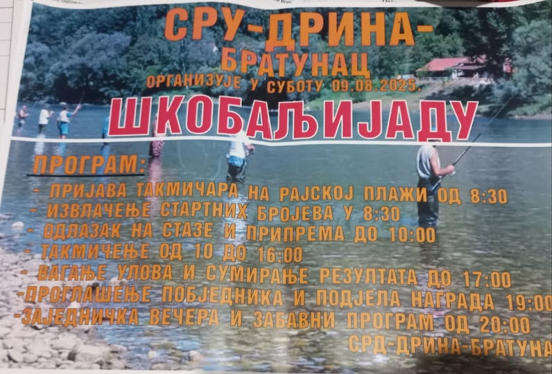 SRU „Drina“ iz Bratunca organizuje tradicionalnu “Škobaljijadu”, koja će se održati u subotu, 9. Avgusta,na Rajskoj plaži u Bratuncu.