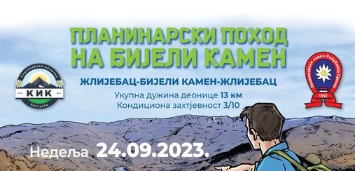 Planinarsko društvo „Kik“ iz Bratunca u nedelju,24.septembra organizuje treći planinarsko-pješački pohod na Bijeli kamen.
